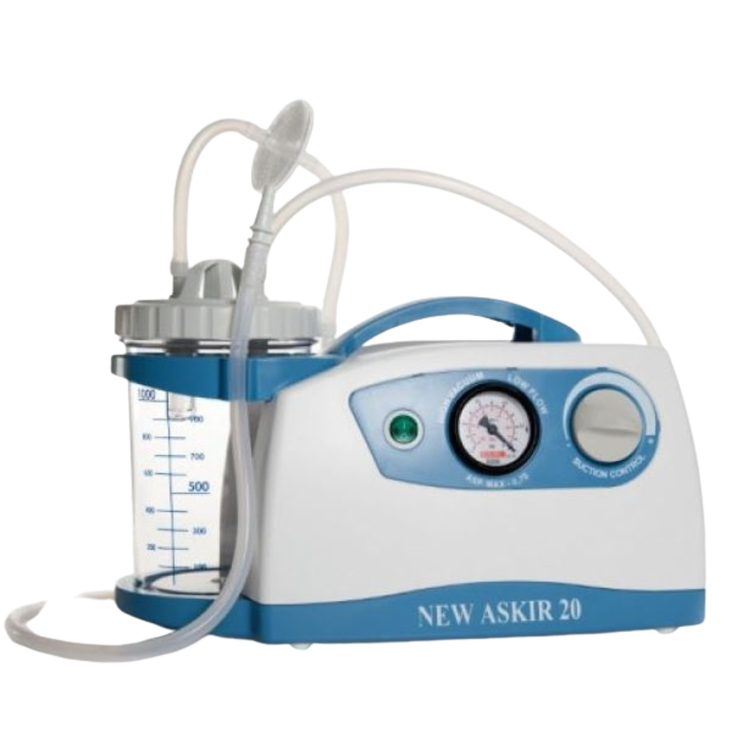 NEW ASKIR 20 est une unité d’aspiration électrique pour l’aspiration des liquides corporels, l’aspiration orale. nasale et trachéale chez les adultes ou les enfants. Convient pour les patients trachéotomisés. les interventions chirurgicales mineures ainsi que les soins post opératoires a domicile