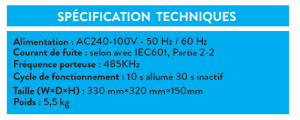 - Volume sonore de travail réglable de 1 à 9